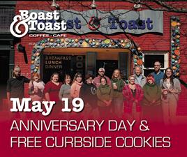 Friday, May 19 — Actual Anniversary Day & Free Curbside Cookies at Roast & Toast