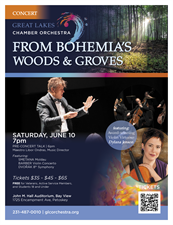 The Great Lakes Chamber Orchestra presents “From Bohemia’s Woods & Groves” on Saturday, June 10th at 7 pm at the John M. Hall Auditorium in Bay View, Petoskey.