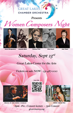 Great Lakes Chamber Orchestra presents Women Composers Night, at 7 pm on Saturday, September 23rd, at the Great Lakes Center for the Arts.